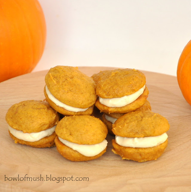 The first whoopie pies I ever made were red velvet last Christmas. What could be better than red velvet whoopie pies? Pumpkin ones! Everyone loves pumpkin this time of year. The maple cream cheese filling really completes the flavors of these delicate pumpkin delights. How could I resist not taking these to Thanksgiving this year?